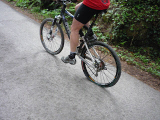 Já no alcatrão, a câmara de ar (de estrada), deu o "berro". O Jorge Rodrigues ainda fez alguns kms com o pneu furado, e nós seguimos até ao carro, no intuíto do voltar de carro para o ir buscar.