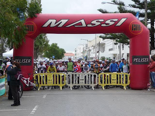 Quando nos dirigíamos para o local de partida, o Jorge Fradique teve um furo, e como o líquido não estava a reparar, teve que colocar uma câmara ar, mas deu muito trabalho porque a válvula da roda estava bem colada e não queria sair.