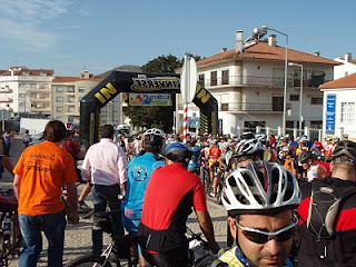 O ambiente na partida estava animado, e até houve sorteios, mas acho que só saíram prémios nos números altos! Na próxima temos que levantar os dorsais mais tarde! LOLAcho que é o período de concentração antes do arranque!